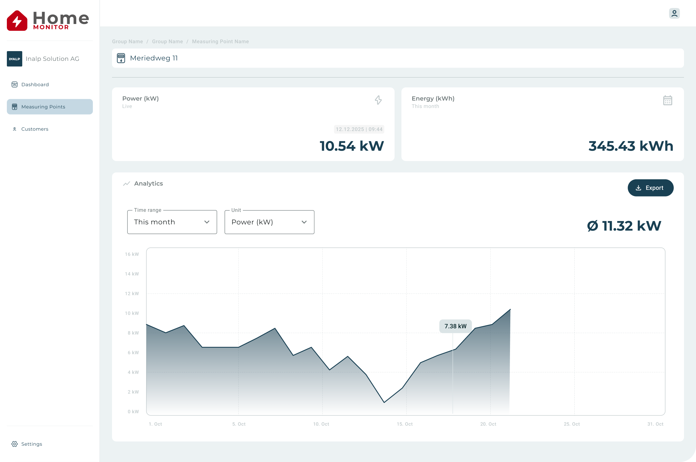 The development of your consumption is displayed in a trend graph in which you can observe and analyze patterns. This will help you optimize your power usage.