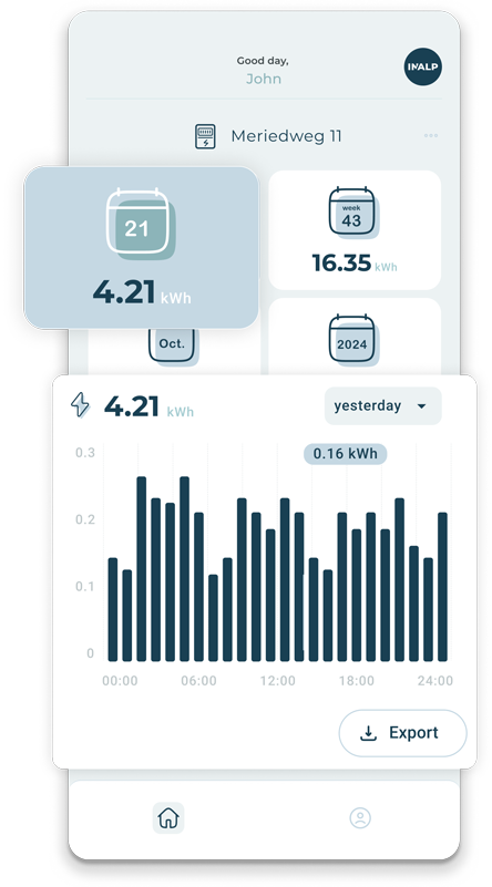 In the app, your historical consumption is broken down into 15-minute, hourly, daily, weekly, monthly and annual reports, which help you to analyze more precisely how much electricity you consume and when.